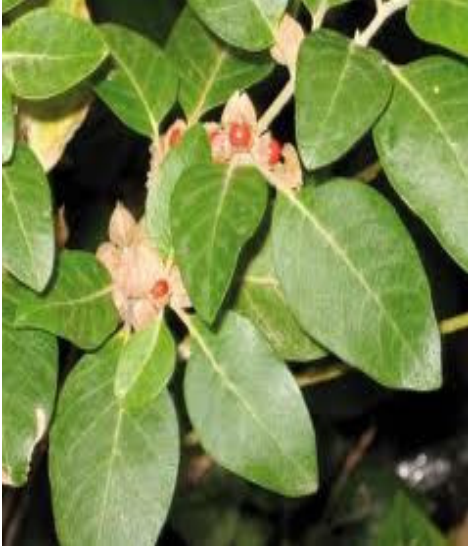 The root powder is used to treat consumption, excessive emaciation, bronchial asthma, rheumatic ailments, insomnia, cardiac diseases, wounds, suppression of urine and sterility. Root powder mixed with honey and ghee in equal parts is recommended for impotence or seminal debility. For improving sight, a mixture of Ashwagandha root powder, liquorice powder and juice of amalaka is recommended for internal administration. For lumbago and knee pain, root powder with sugar candy in ghee is advised. Combination of Mandukaparni (Centella asiatica), Sankhapuspi (Convolvulus microphylla), Ashwagandha and Satavari (Asparagus racemosus) is used to promote intellect, vitality, stability and strength. Powder of sugar, Ashwagandha and Pippali (Piper longum) mixed with ghee and honey is used for rejuvenation and in spermatorrhoea.